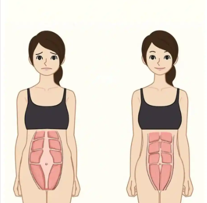 腹直肌分离,危害可不小。它不只是影响美观,更会削弱腹壁核心肌群力量,让躯体稳定性变差,内脏器官支撑力下降。常伴随腰背疼痛、骨盆不稳定,增加器官脱垂和漏尿风险;还会导致"妈妈肚"松垮褶皱,严重时出现脐部疝气。