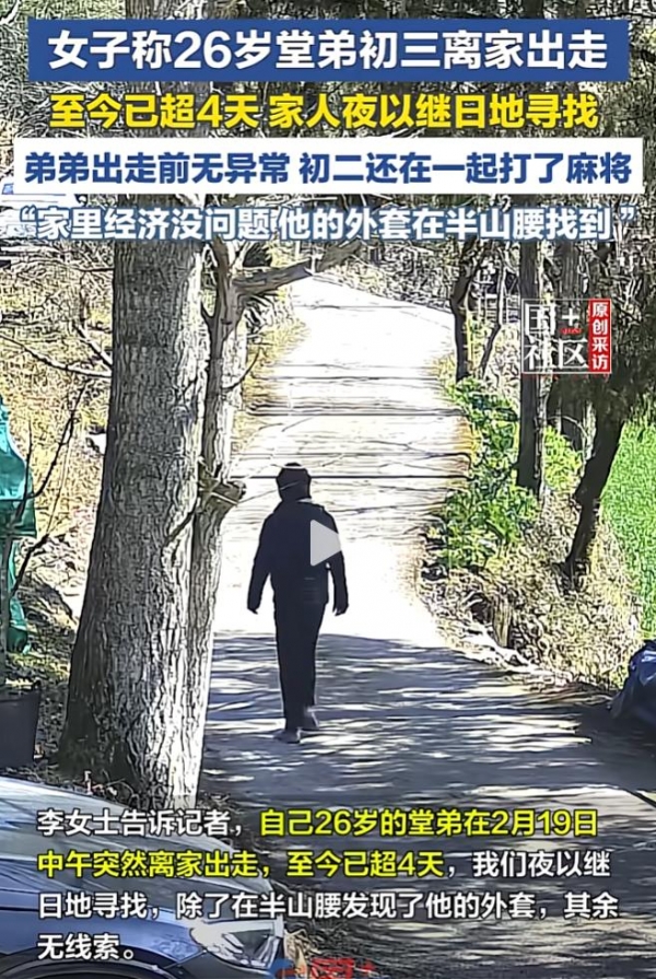 而堂姐透露出的种种细节,也让网友们陷入了沉思,不少网友都猜测,男子可能在离家出走之前就已经出现了问题,只是没得到家里人的重视。