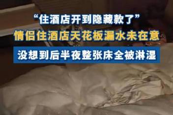 当事人称,当时自己与男友去旅游比较兴奋,而且外面也在下雨,在酒店准备睡觉时听到嘀嗒的声音,发现天花板在漏水就没有很在意,后来从边上的天花板到中间的天花板都在滴水,整张床全被淋湿一直持续到后半夜,后面酒店临时给换了房间。