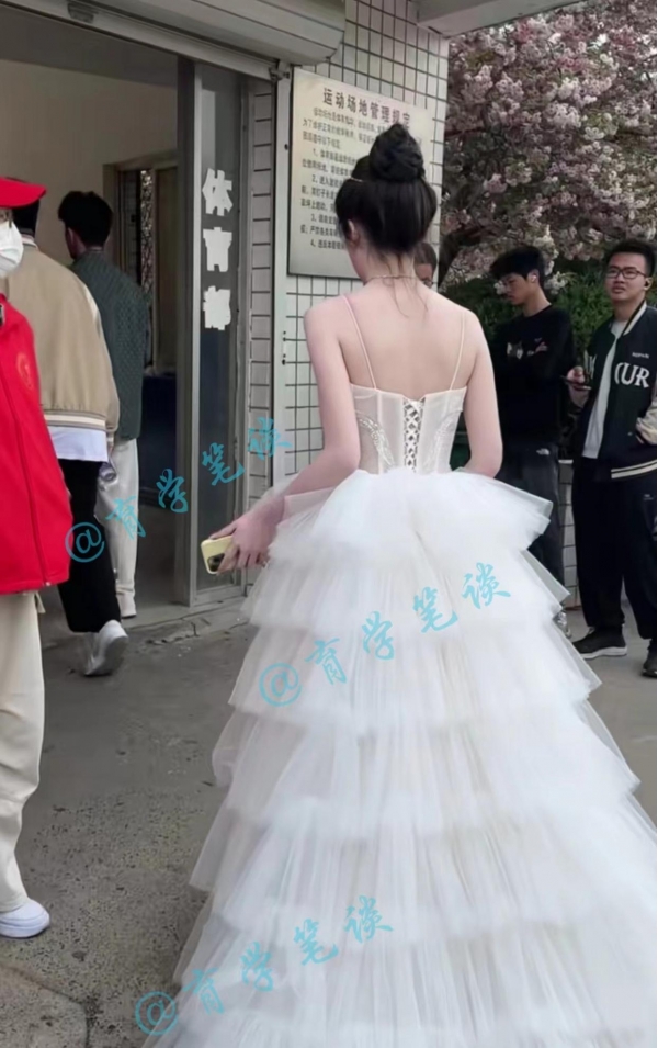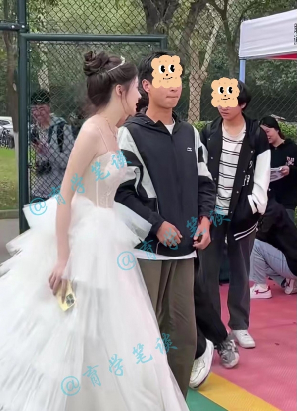 从视频来看,这位大四学姐面容精致,身形高挑,面部的表情也非常柔和,非常有亲和力,在一袭白裙的映衬下光彩照人,气质绝佳,她无疑成了整个运动场上最大的亮点。