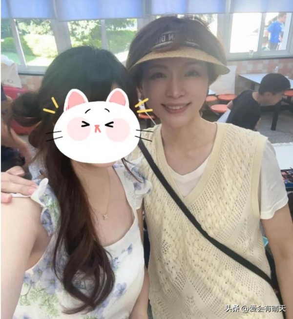 有家长想合照,她立马放下东西,搂着对方笑容满面,皮肤紧致、唇红齿白,网友惊叹:"这颜值,比精修图还能打!"