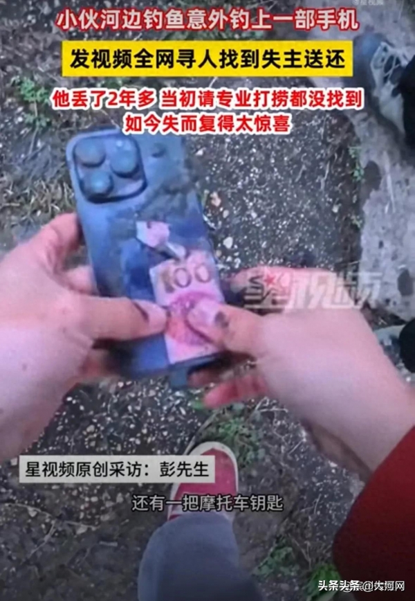 3月16日(采访),湖南长沙一小伙称,他在河边钓鱼意外钓上一部手机,"本来以为是垃圾,刚钓上来一看是个防水袋,里面有一台手机,还有100元钱和一把摩托车钥匙。"