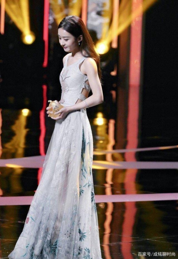 因为身材管理有加,赵丽颖的手臂和背部也显得非常纤薄,穿上这种露臂露背的服装,才能凸显出服装的高雅与优美是身材。