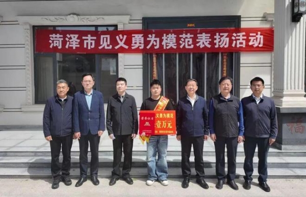 4月20日,菏泽市委政法委、市见义勇为基金会专程送奖上门,授予张健"菏泽市见义勇为模范"称号,并发放奖金一万元。