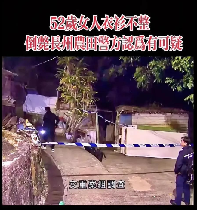 2025年2月15日下午,香港长洲信义村发生一起令人震惊的事件。一名52岁女子被发现死在私人农田旁,尸体被发现时衣衫不整,警方已介入调查,案件由水警总区重案组负责,暂列为"尸体发现"案件处理。