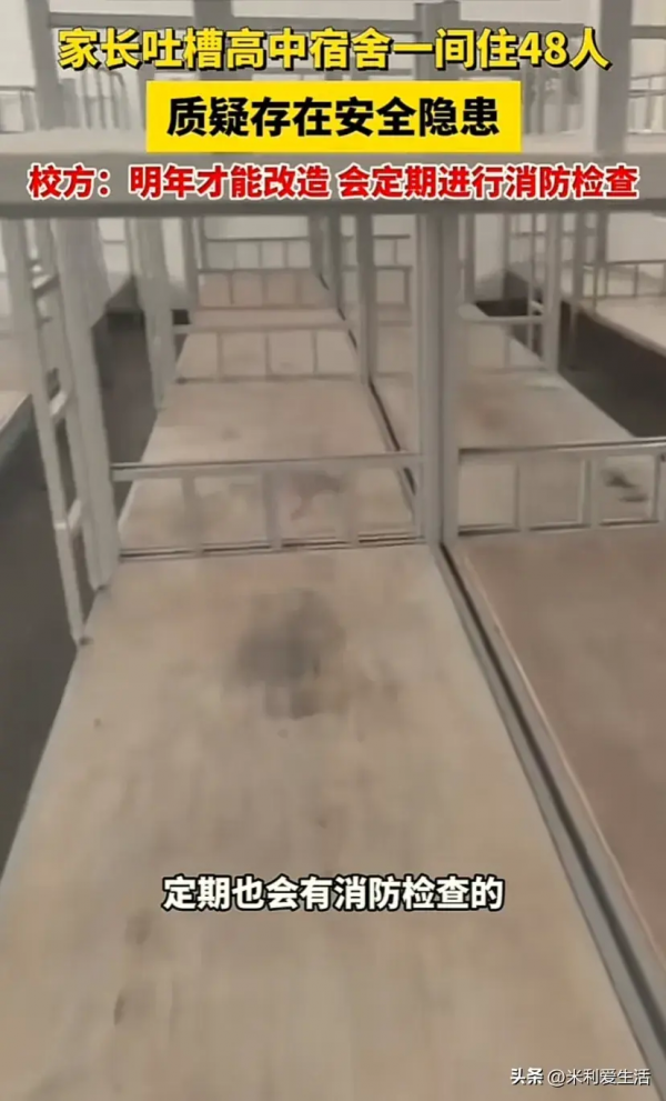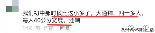 河南一网友称,自己初中时住的寝室比视频里的还小很多,四十多个人,每人也就40公分,环境还潮湿。