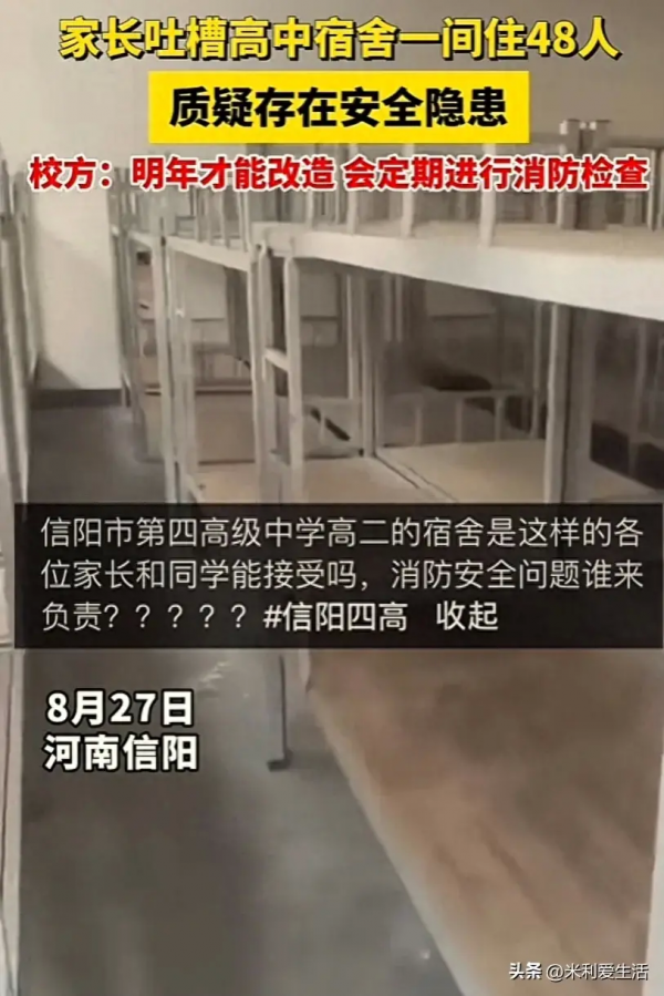 学校正在改造,要到明年才能改造好,居住条件虽然差点,也就差这一年。定期也会做消防检查,晚上学生们入睡就会断电,不会有消防隐患的。