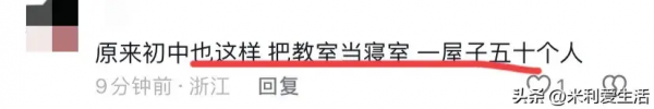 浙江一网友称,自己初中也这样,把教室做寝室,一屋住50人。