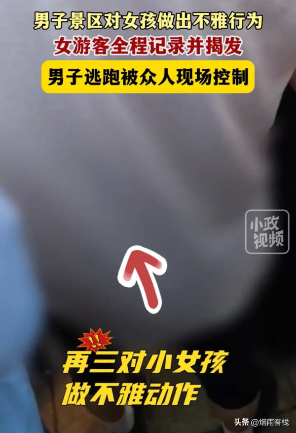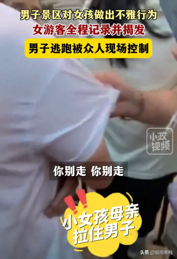 让现场的目击者实在看不下去,直接选择了大声呵斥制止!并且这名男子被小女孩的母亲拉住,并且大喊说这名男子"性骚扰"。