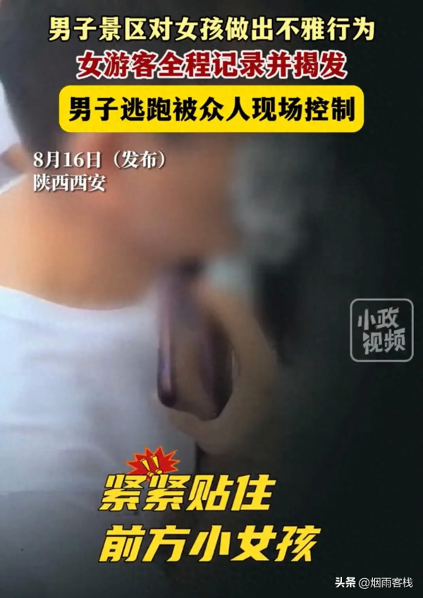 陕西西安某景区内,一名男子趁乱紧贴一名小女孩的背部,并多次做出不雅行为,,后面明明还有很大的空位置,可别再狡辩说是人多不小心挤到了。