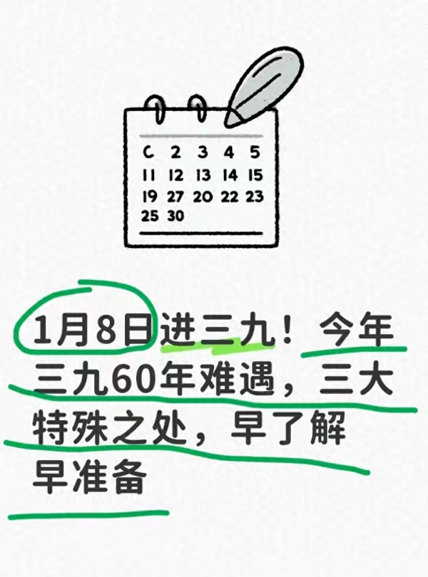 2026年的三九恰逢大寒、拉尼娜现象和朔日,形成了"60年难遇"的特殊气候格局,冷上加冷的天气需要我们更用心地做好准备。其实过冬的核心就是"防骤冷、保温暖、护健康",只要提前做好生活、健康、出行等方面的准备,就能平稳度过这个最冷的三九。希望这篇文章能帮大家摸清今年三九的