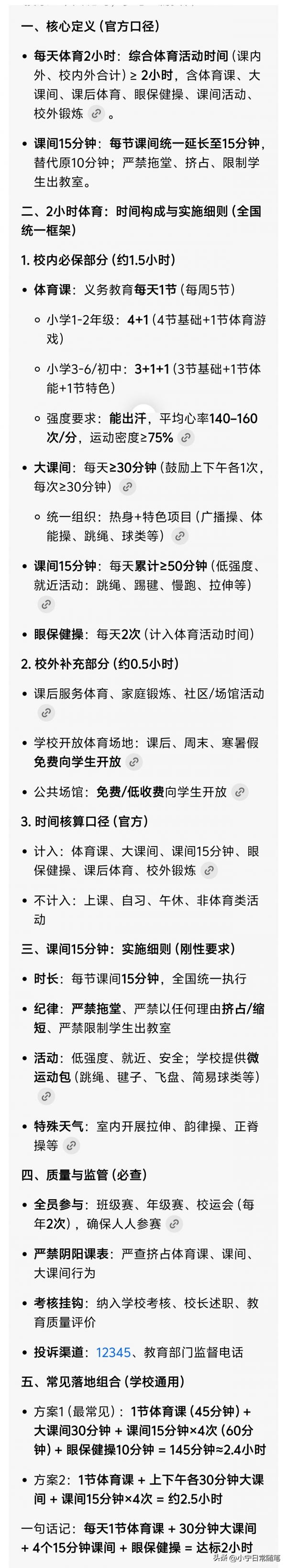 简单总结就是:每天2小时体育 + 15分钟课间,= 身体好 + 学习好 + 心情好 + 睡眠好 + 性格好。