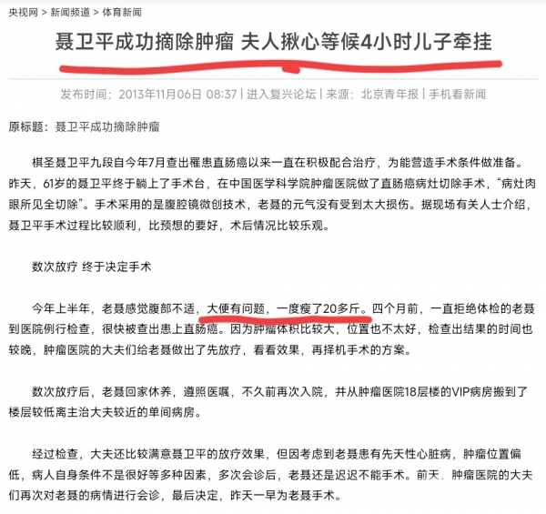 消息来得突然,朋友圈里全是"聂老走 好"的感叹,好多人想起他当年在围 棋桌前吸氧的样子。