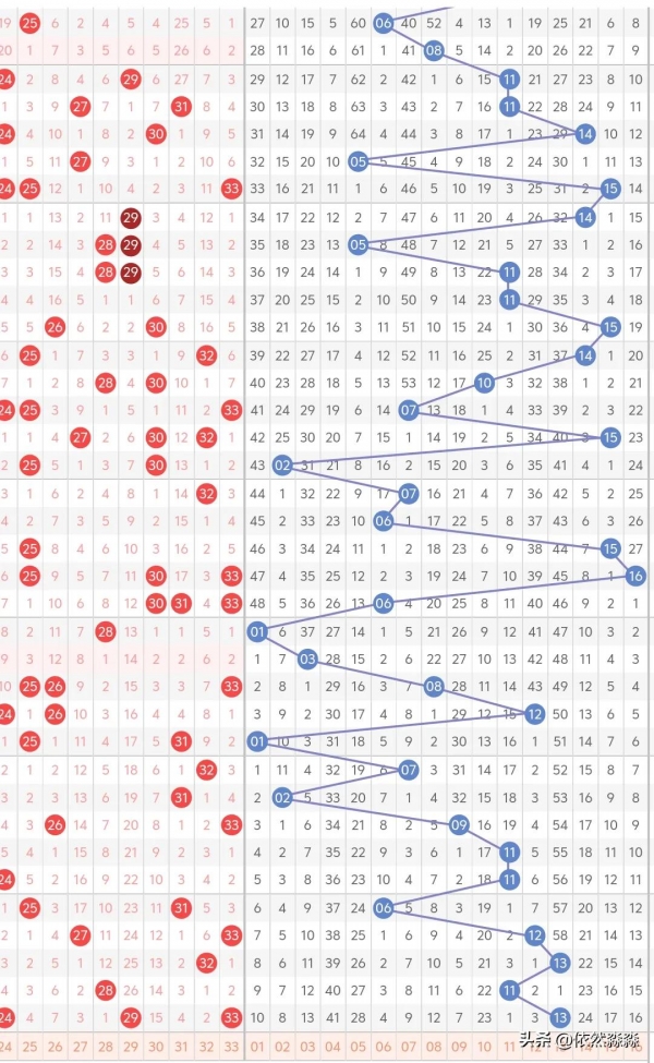 红球3路内:开出3个号码24、29、33,其中24、33为热码,29为冷号,剩余1码冷号30出现可能较小,23、25、27、31考虑1码,有重1码可能,尾号考虑32、33,对应号码28、30,排除号码26、31。
