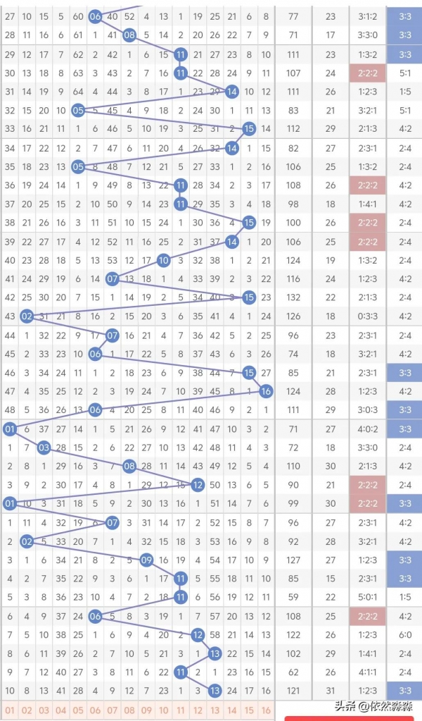 红球1路内:开出1码重号02,本区近期内重号明显较多,再次重落可能较小,01、04、05考虑1码,06、07、09、10、11考虑1码,头号考虑在4一6之间,对应号码01、02、03、07,排除号码02、08。