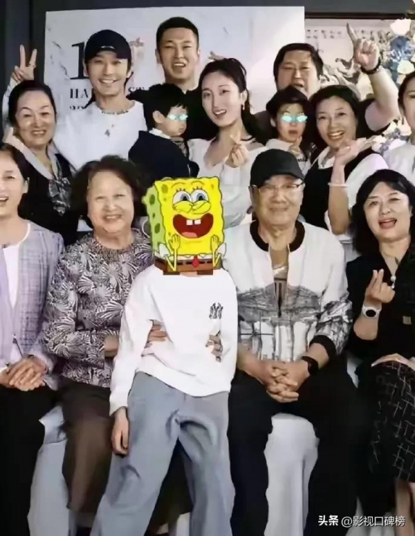 而有眼尖的网友发现站在素人夫妻俩中间的熟悉身影,细看居然是黄晓明。而坐在最前排中间的是黄晓明的妈妈和爸爸,她的怀里搂着一个被打上海绵宝宝贴纸的小孩,便是小海绵,一家四口共同参加亲友孩子的周岁宴。