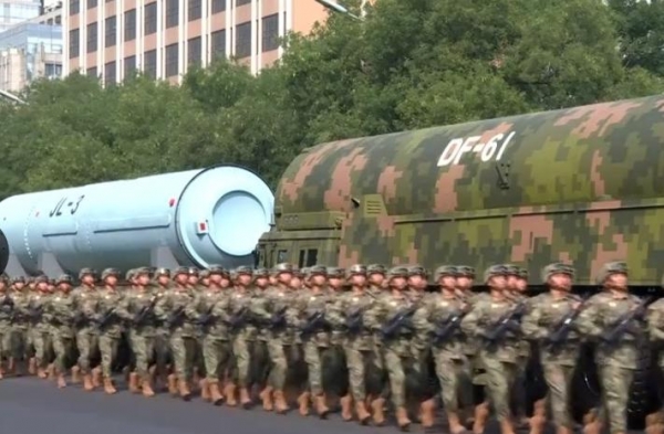展示的先进武器装备向全世界宣示:中国的崛起无人可以阻挡,但中国始终坚持"最低限度核威慑"政策。中国是五核国中唯一承诺"无条件不对无核武器国家使用或威胁使用核武器"的国家,这意味着中国不参与全球性核军备竞赛。