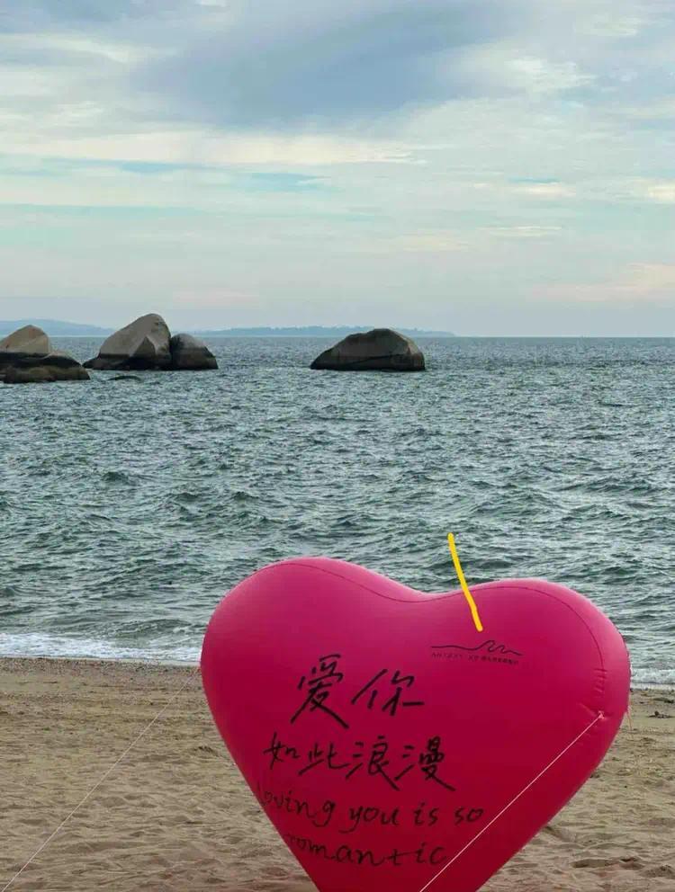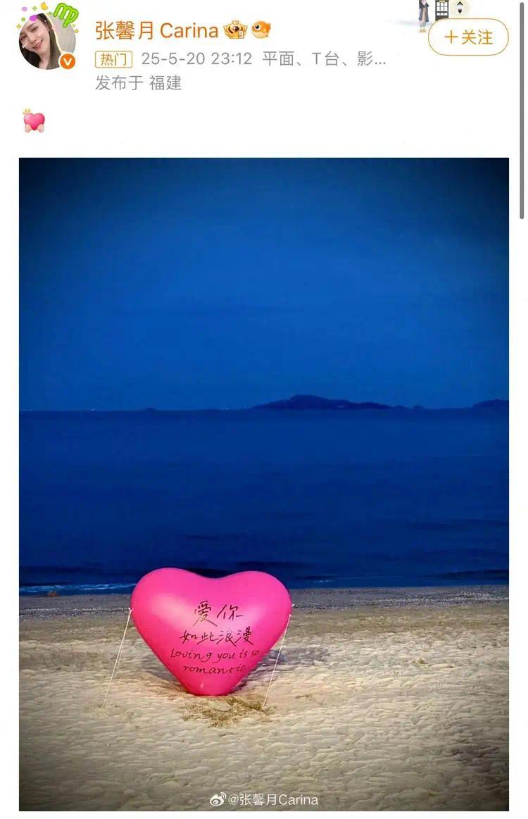 520这天,不少明星情侣夫妻都有在这天秀恩爱晒幸福,林峯老婆张馨月也不例外,她在晚间11点多晒出一张沙滩气球照片,还配了一个爱心表情。