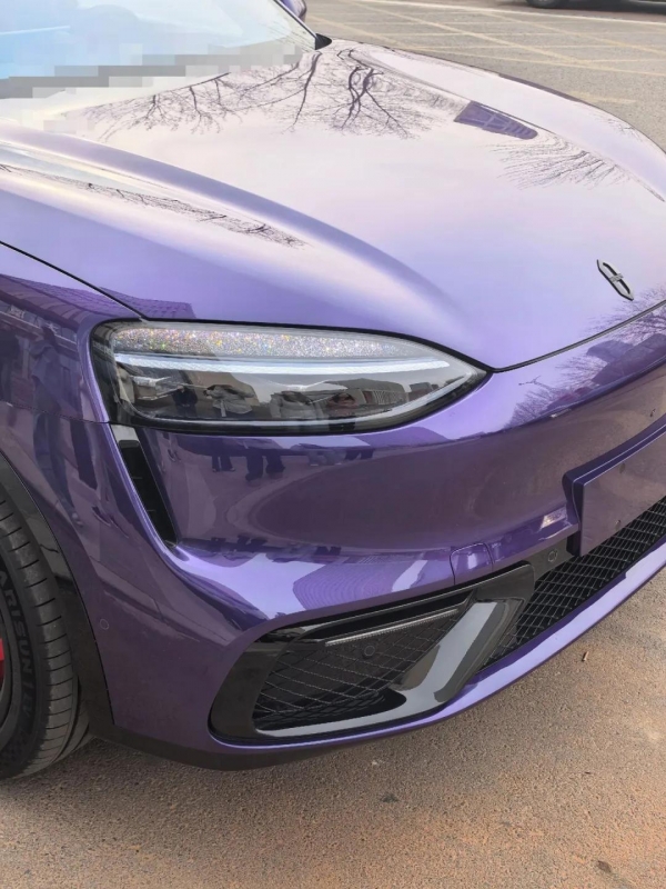 内饰用料也没含糊:紫/白双拼色,大面积皮质+麂皮包覆,环绕式氛围灯,还有洛可可白贝母饰板,豪华感拿捏得很到位。