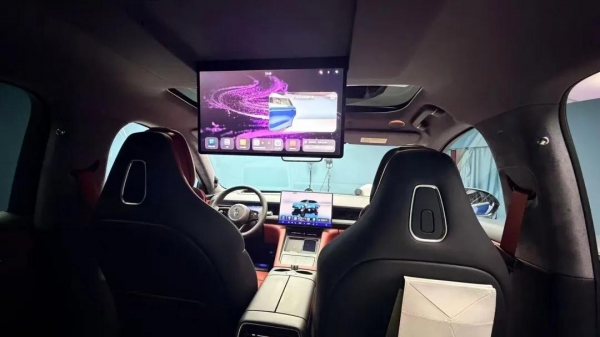 前排采用一体式运动双零重力座椅,支持通风、加热、按摩。后排配置更是"满配":吸顶娱乐屏、折叠小桌板、智能冷暖冰箱、全景天幕+电动遮阳帘,家用属性一点没落下。