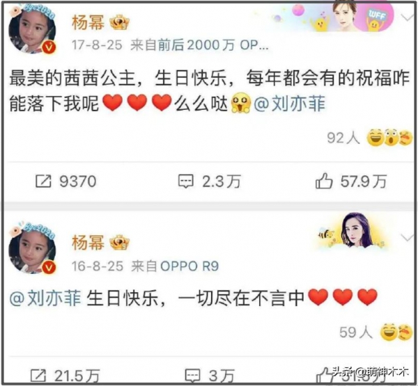 杨幂也曾给刘亦菲每年送过生日祝福,但2017年左右开始就没了。大众印象里,杨幂和刘亦菲正是因为那句"杨幂之后再无白浅"决裂的,