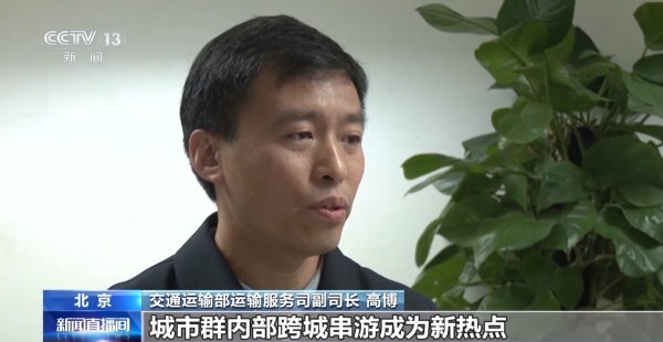 交通运输部运输服务司副司长 高博:城市近郊游、乡村深度游,给农村地区带来了"人气"和"财气",带火了当地的特色产业,促进了农民增收,助力了当地经济的发展。