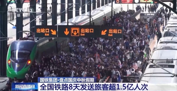 记者今天从国铁集团获悉,8天假期,全国铁路累计发送旅客超1.5亿人次,同比增长2.6%。