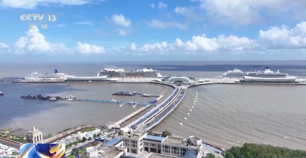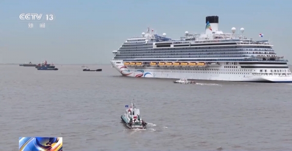 吴淞海事局船舶交通管理中心主任 刘伟:我们邮轮港附近水域是大小船只进出长江、黄浦江的"咽喉要道",船舶流非常密集,国际邮轮属于超大型船舶,我们依托智慧海事系统,研判船舶流变化及对邮轮靠离泊的潜在影响,及时开辟"绿色通道",还有海事巡逻艇护航,保障邮轮安全进出港。