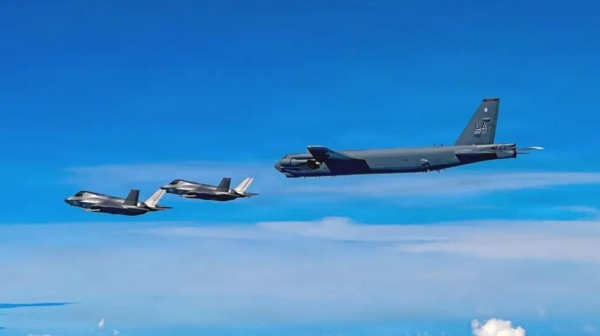 而就在上个星期,美国空军曾出动3架B-52H"同温层堡垒"轰炸机,在多架F-35B隐形战机的护卫下飞临相同区域。美军两款轰炸机先后飞临委内瑞拉,显然是在熟悉战场环境,甚至是发动模拟打击,这表明美国对委内瑞拉的武力打击行动正在紧密筹划中。