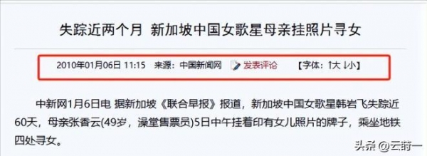 时间来到2024年的今天,还是没有消息,韩岩飞的故事出现在了百度百科上,母亲张香云头发早已花白,一直走在寻找女儿的路上。