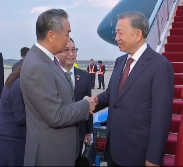 向中方交底后,18号下午,苏林便乘专机前往北京。抵达北京时已经是傍晚,王毅外长负责在现场接机,走下舷梯后,苏林握着王毅外长的手,交谈了超过两分钟。现场播放的欢迎歌曲也非常有讲究,是越南家喻户晓的《越南-中国》,歌词中"共饮一江水,朝相见,晚相望"既描述出了中越地理上的紧密相连,山水相依,还刻画了中越之间特殊的友谊。
