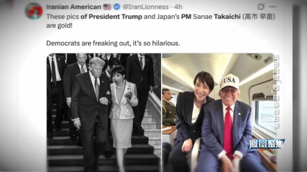 二人的数个瞬间被社交媒体热议,如美军基地演讲,特朗普搂着高市的肩膀,演讲结束,他拥抱高市耳语,牵手送其下台;高市在总统直升机上侧坐着和特朗普的合影以及挽着特朗普胳膊下楼梯的照片,更是被点评为美日关系的标志、搞笑等。作为国家领导人的高市看上去已经付出了极大的努力,甚至遭到日本媒体的抨击。她和特朗普真的成了一见如故的亲密朋友了吗?他们高喊的美日同盟真的如此辉煌吗?