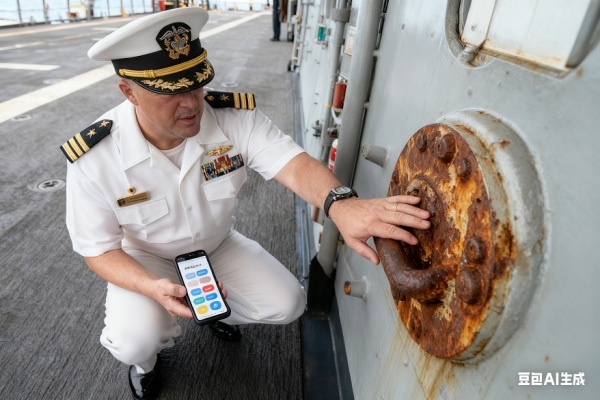 未来美国海军舰长或可以通过手机应用程序随时评定和报告舰上各部位状况(图片根据拉特纳的描述使用AI生成)