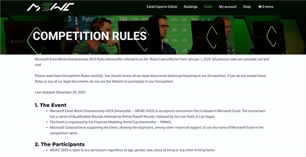 据介绍,这是一项基于微软Excel的电子竞技锦标赛,锦标赛包括一系列资格赛、线上季后赛,最后在拉斯维加斯进行现场决赛。