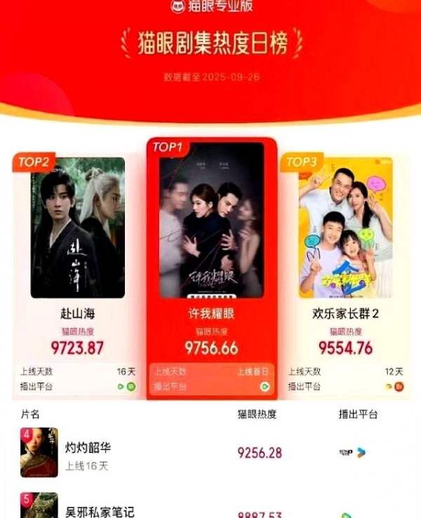 27000热度、12.7%市场占比、豆瓣6.2,三组数字把《许我耀眼》推上热搜,也把赵露思推到95花排头。平台敢零宣传空降,赌的就是赵露思去年五部剧部部破亿的稳定回款率;猫眼数据一小时内飙到两万七,说明算法早就算准她的基本盘能扛首日流量。