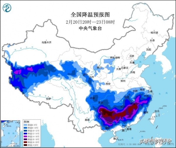 这几天天我国北方出现了明显的寒潮降温天气,像新疆最低气温低于零下50℃,今天是正月十二,寒潮带来的大范围降温天气还在持续,我国南方大部分地区最低气温将普遍下降8~12℃,其中华南中北部、江南大部等地气温将下降12~18℃,在部分地区正月里更是出现了罕见的"雷打雪"天气。