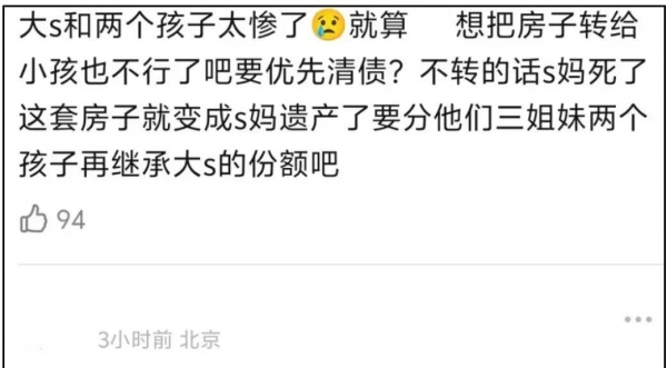 从外界角度看,大S一双子女如今大一个才十几岁、小的还不到10岁,他们在未来可能需要在律师、监护人、长辈之间,厘清母亲遗产中哪些是资产、哪些是负债。台湾儿童权益团体在讨论类似案例时曾给过建议:遇到巨额债务和复杂家庭结构时,最好能有第三方专业机构介入评估,而不是只靠家族内部沟通,否则几年后再翻旧账,成本会更高。