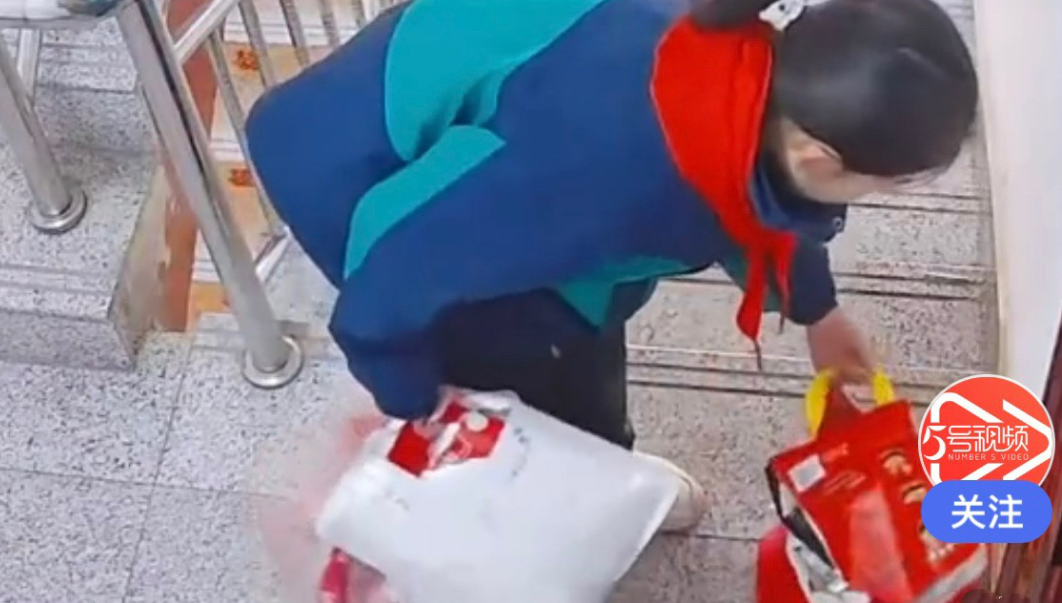 近日,内蒙古一小学生女孩下楼扔垃圾,看到邻居家门口放着垃圾袋,虽然她手中已有垃圾袋,加上邻居家的垃圾袋,她并不好提,但她也没有放弃,把所有垃圾袋整理了一会儿后就提着下楼了……