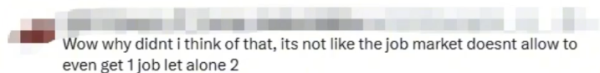 还有网民嘲讽说,"我怎么没想到这么做呢?可是我连一份工作都找不到,更别说再打一份工了。"