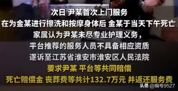 5月12号,尹某第一次上门干活,按照合同里约定的内容,给金某擦了身、按了按身体,都是些基础的生活照料活。可让人万万没想到的是,当天下午,金某就突然没了呼吸。虽说金某一直处于昏迷状态,但之前一直有稳定的生命体征,保姆刚上门一天人就没了,家属怎么也接受不了这个事实。他们觉得,尹某干活不够专业,护理的时候大概率出了差错;而且家政平台也有责任,推荐的保姆根本没有照顾重症病人的资质,才酿成了这场悲剧。于是,家属直接把尹某和家政平台一起告到了淮安市淮安区人民法院。