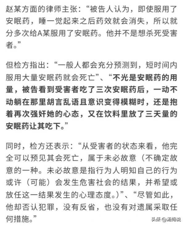 然而,检方反驳说,大量服用安眠药可能导致死亡是一个常识,尽管受害人在服用药物后已出现意识模糊和言语不清的状况,嫌疑人仍继续让她服用更多药物。