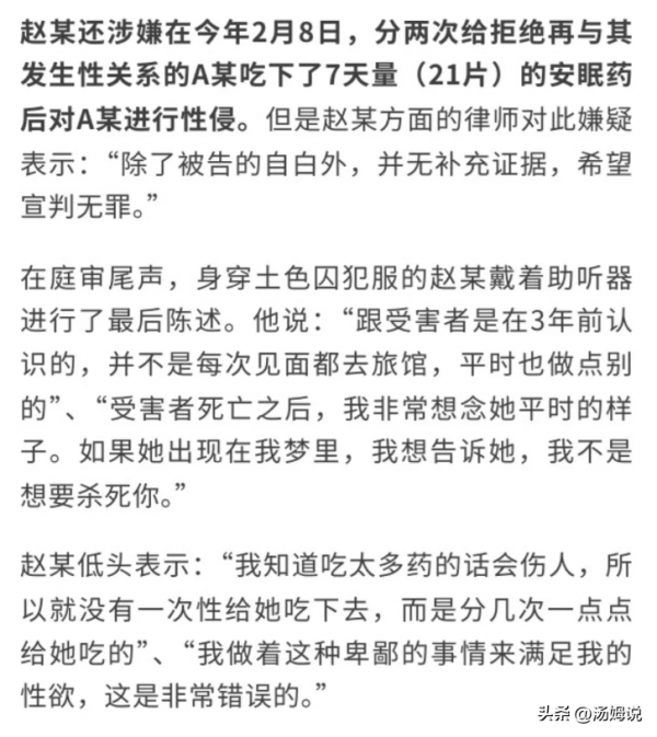 在审判结束时,嫌疑人表达了对自己行为的后悔,并承认自己分多次让受害人服用大量安眠药以满足性欲是错误的行为。