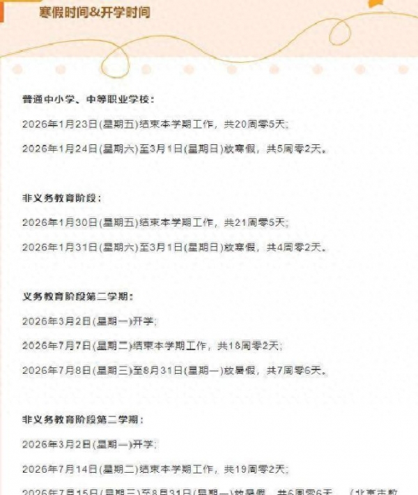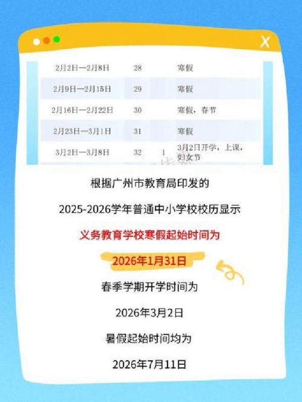 放假时间约20天(以校历为准),开学预计在3月份,家长们都在算着时间表。