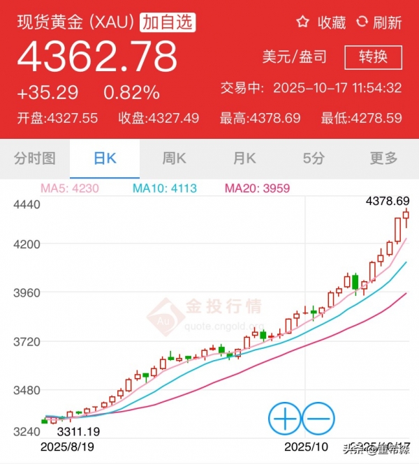 当现货黄金价格在周五一度逼近4380美元/盎司,创下历史新高,这场始于2024年的贵金属牛市已不仅是简单的价格波动--它既是全球资本对美国政府关门、中美局势升级、美联储降息预期的集体回应,更是黄金"避险资产"属性在货币信用动摇、地缘风险加剧时代的强势回归。从央行持续增持黄金以"去美元化",到投资者涌入黄金ETF推高持仓至三年峰值,再到印度、中国的文化性实物需求托底,多重力量共同将金价推过1980年通胀调整后的历史峰值。然而,高企的金铜比价、潜在的美元反弹与获利了结压力,也为这场牛市埋下了变量。本文将深入拆解黄金上涨的核心逻辑、央行购金的战略意图,以及潜藏的投资风险,解析这一"终极价值锚定物"如何重塑全球资产配置格局。