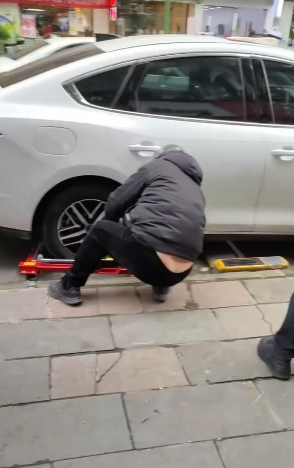 况女士称,她大概20分钟后到达车位,发现自己的车已被挪到前方车位,地锁已抬起并开始计费。"附近门店的朋友拍到对方私自挪车的视频。"况女士说,视频里几个陌生人用"挪车工具"将车辆四个车轮架起后推行挪动。