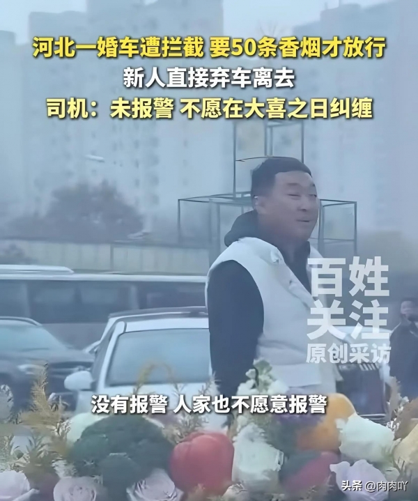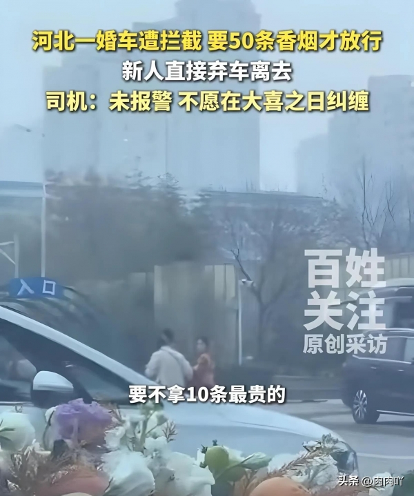 大喜的日子,本该是笑逐颜开的时刻,偏偏有人把婚车堵在原地一个多小时,开口就要50条烟。这事就发生在河北廊坊一家酒店的停车场里。新人本来想图个吉利,给点烟就罢了,结果对方根本不买账,非要拿到"进货量"才肯放行。你说这是闹喜?我看更像是趁人办大事,狠狠敲一笔。
