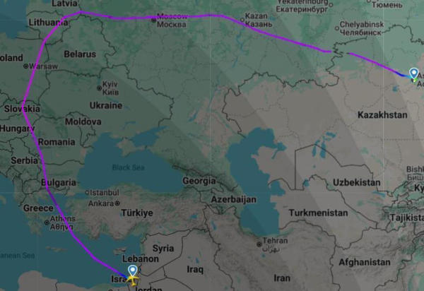 报道指出,因安卡拉方面拒绝,该专机已更改航线,途经欧洲和俄罗斯。以色列原计划航线可经土耳其、亚美尼亚和阿塞拜疆,从而大幅缩短飞行时间。由于此次改道,飞行耗时约八小时。