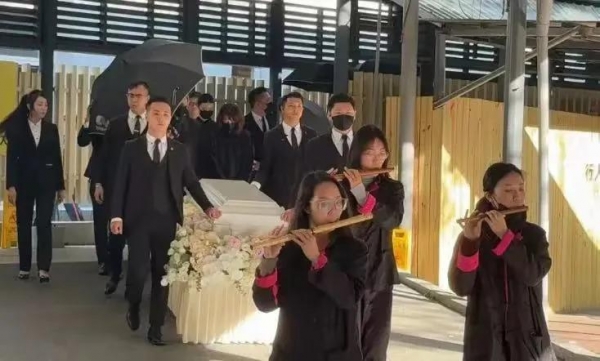 当遗体从灵堂里面推出来的那一刻不少台湾媒体听到家属传来悲恸的哭声,家属跟随着遗体前往火化馆