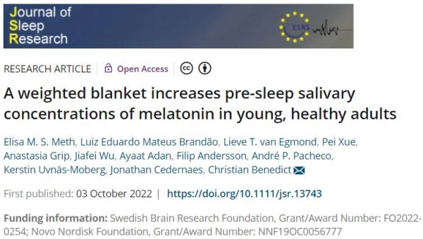 还是由瑞典大脑研究基金会牵头开展的研究解释了"盖厚被子改善睡眠"的一大原因--被子越重,睡前褪黑素释放得越多,睡眠自然更好。该研究发表在Journal of Sleep Research上。