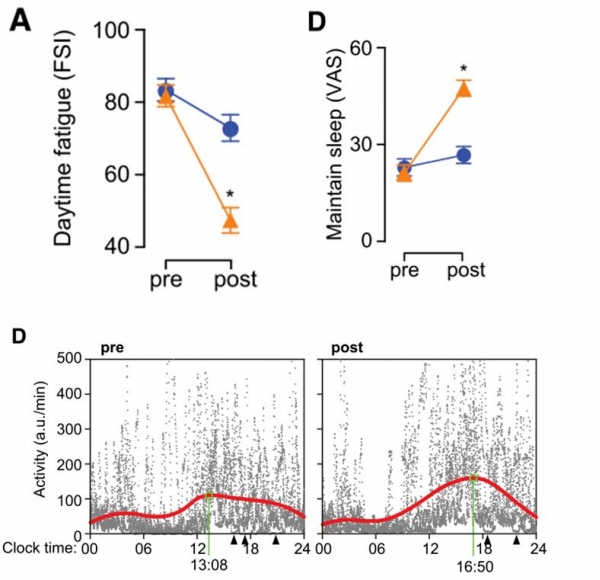 腕部活动记录仪也显示,使用重毛毯能够使参与者维持睡眠的能力提高,在失眠症状的改善同时,参与者日间功能也出现了积极的改变--白天活动增加,专注时间更长,休息时间更短。